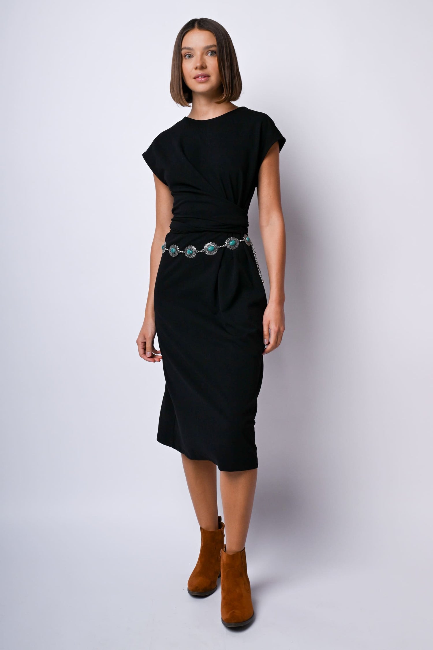 - Abito midi con nodo alla vita