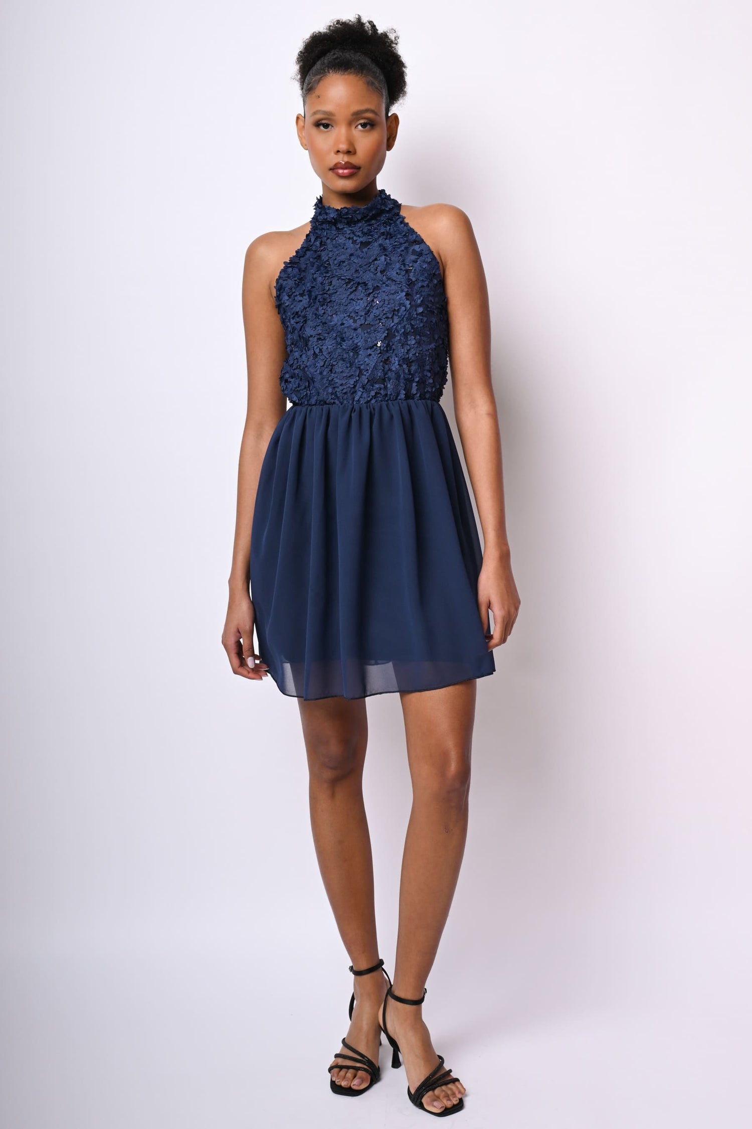 - Mini abito con fiori 3D e paillettes