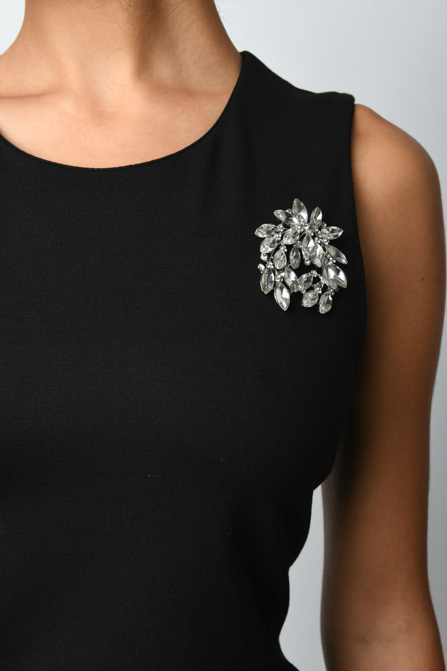 Abito a tubino in misto viscosa stretch nero con scollo tondo, silhouette aderente e chiusura con zip al centro dietro.
