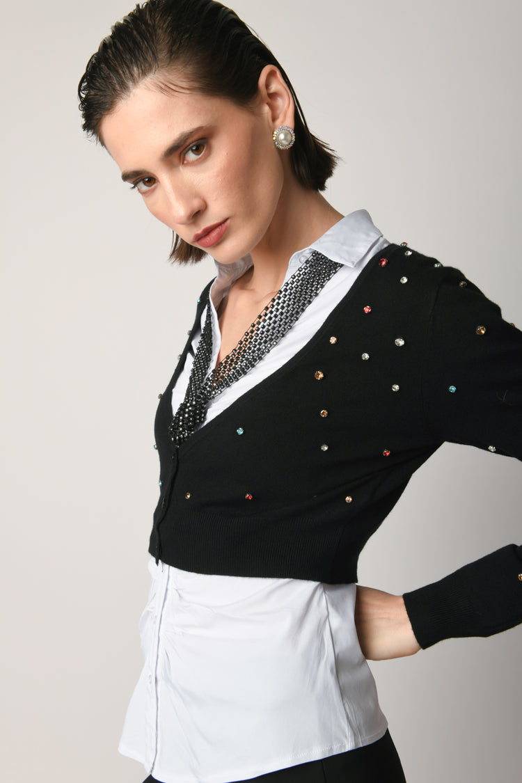 - Cardigan crop con strass