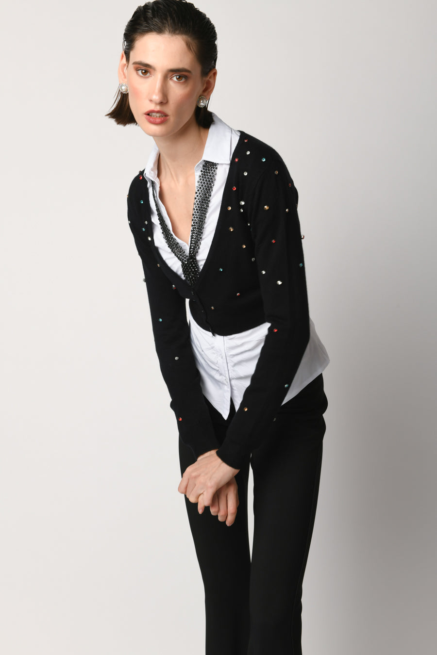 Cardigan crop con strass