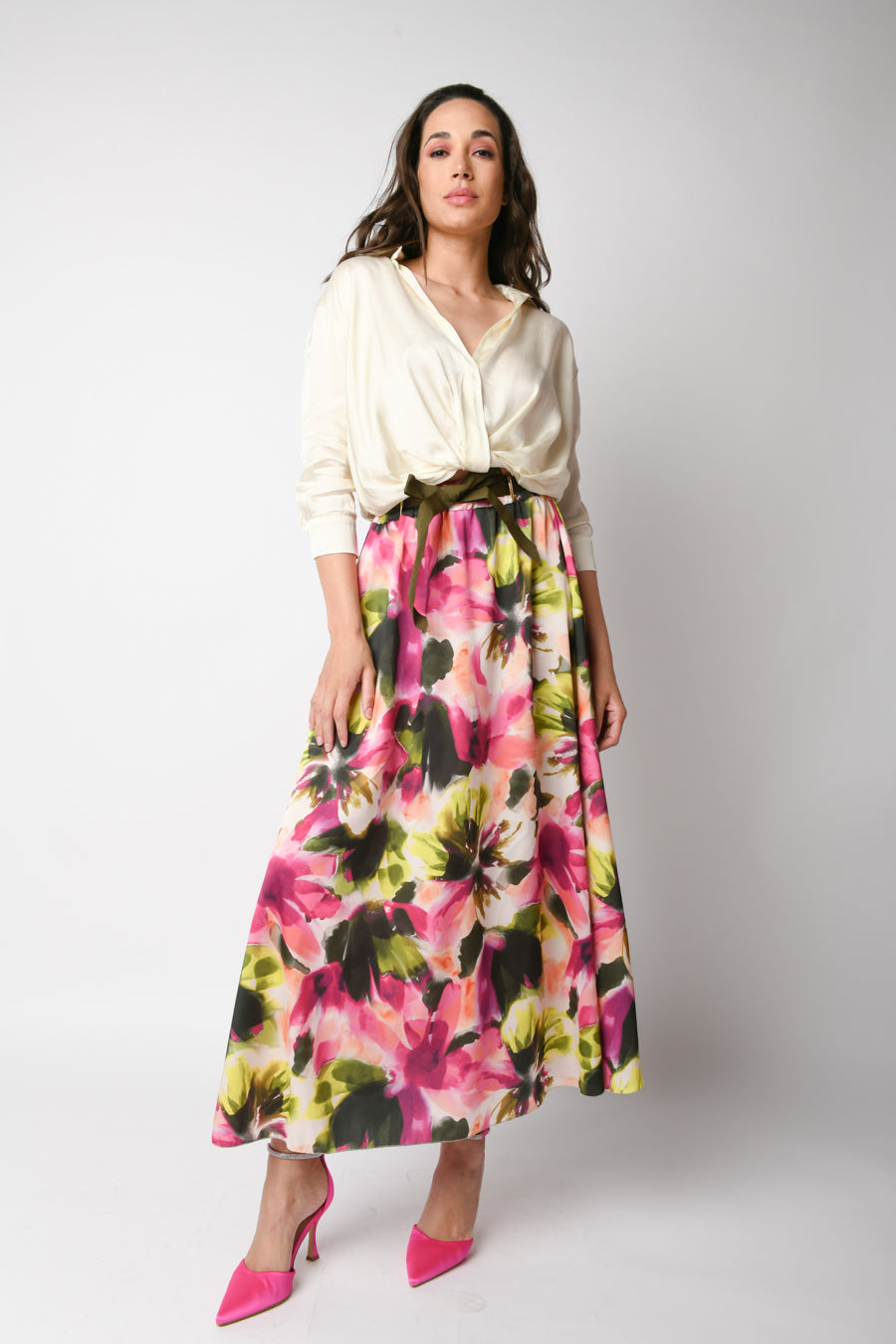 - Gonna lunga a stampa floreale con cintura