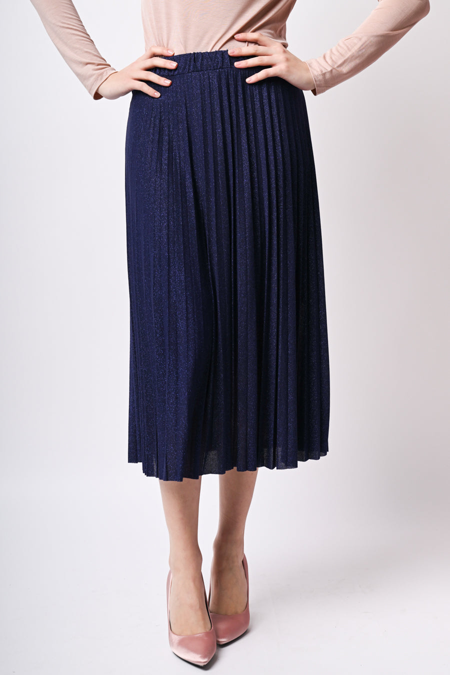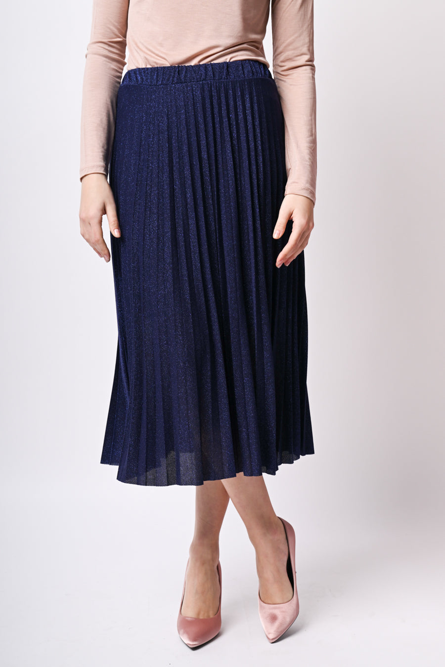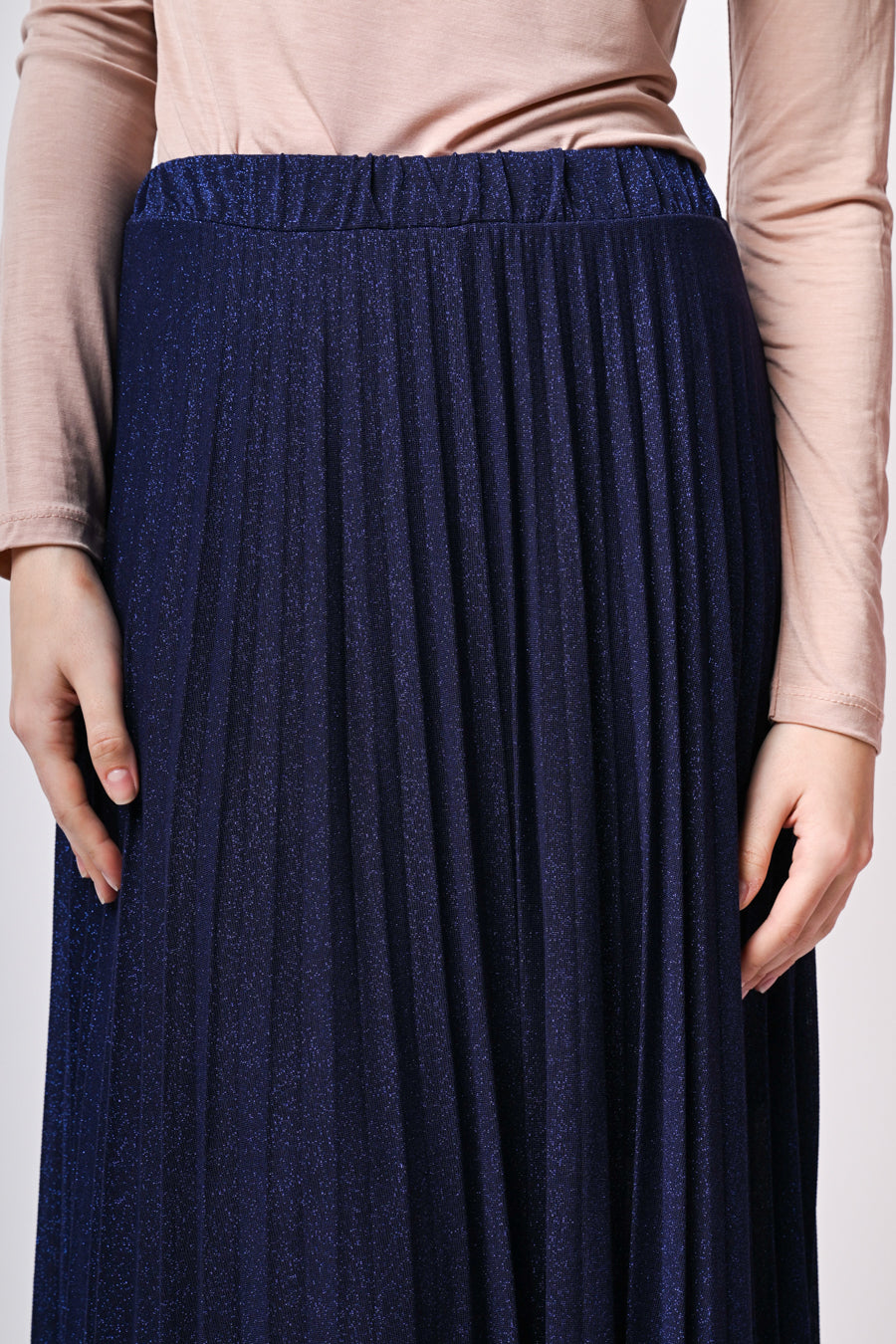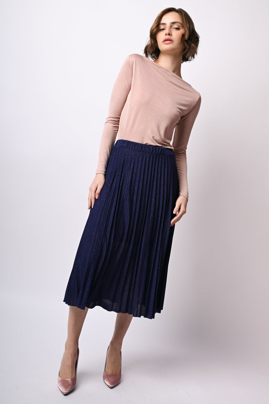 Gonna midi in jersey plissé misto viscosa lurex blu con vita elasticizzata.