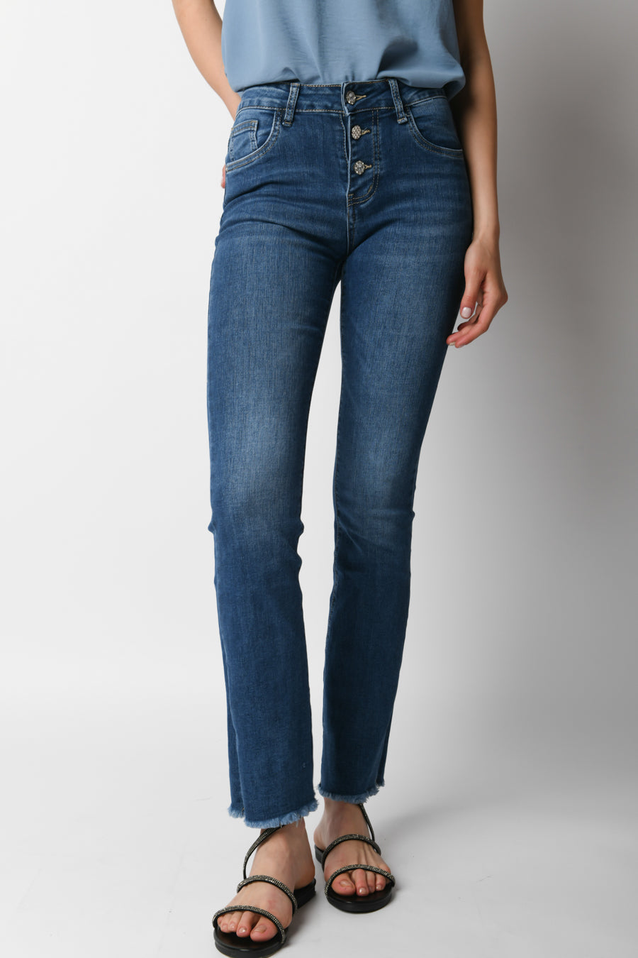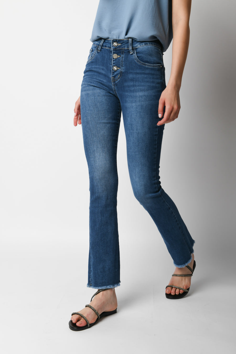 - Jeans con bottoni gioiello