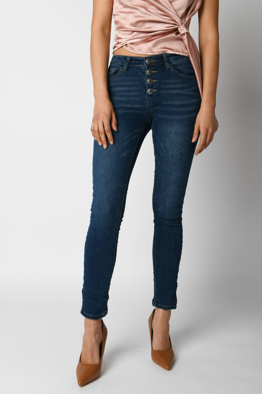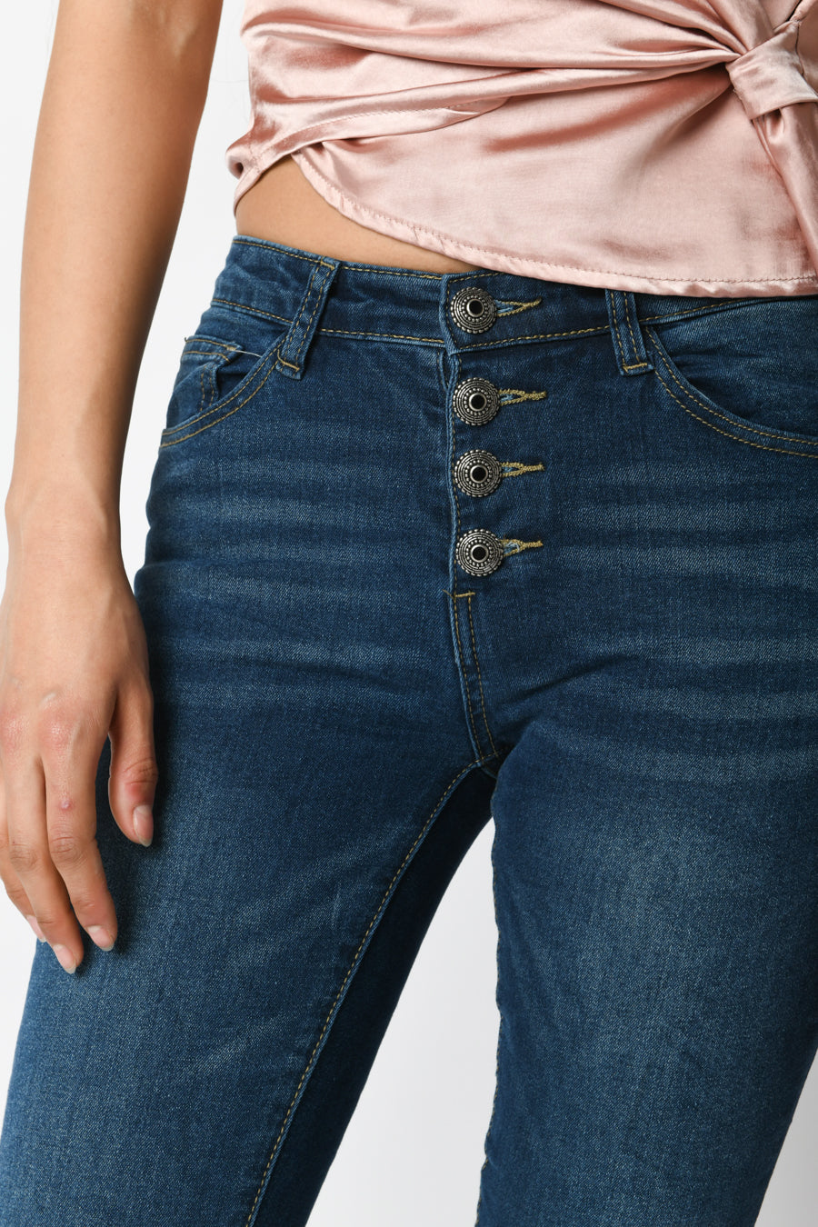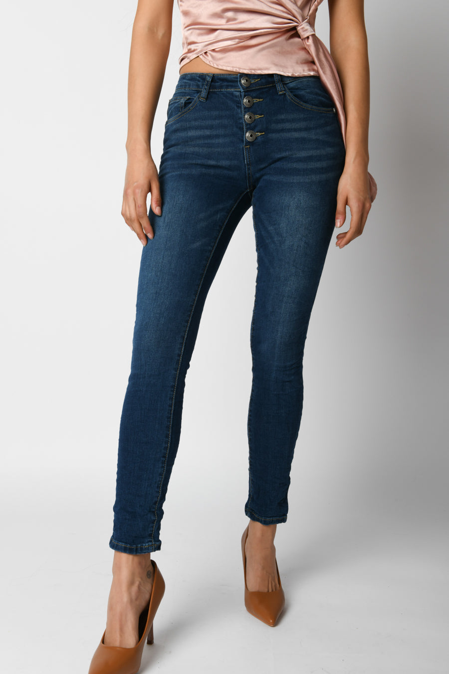 - Jeans skinny con bottoni gioiello