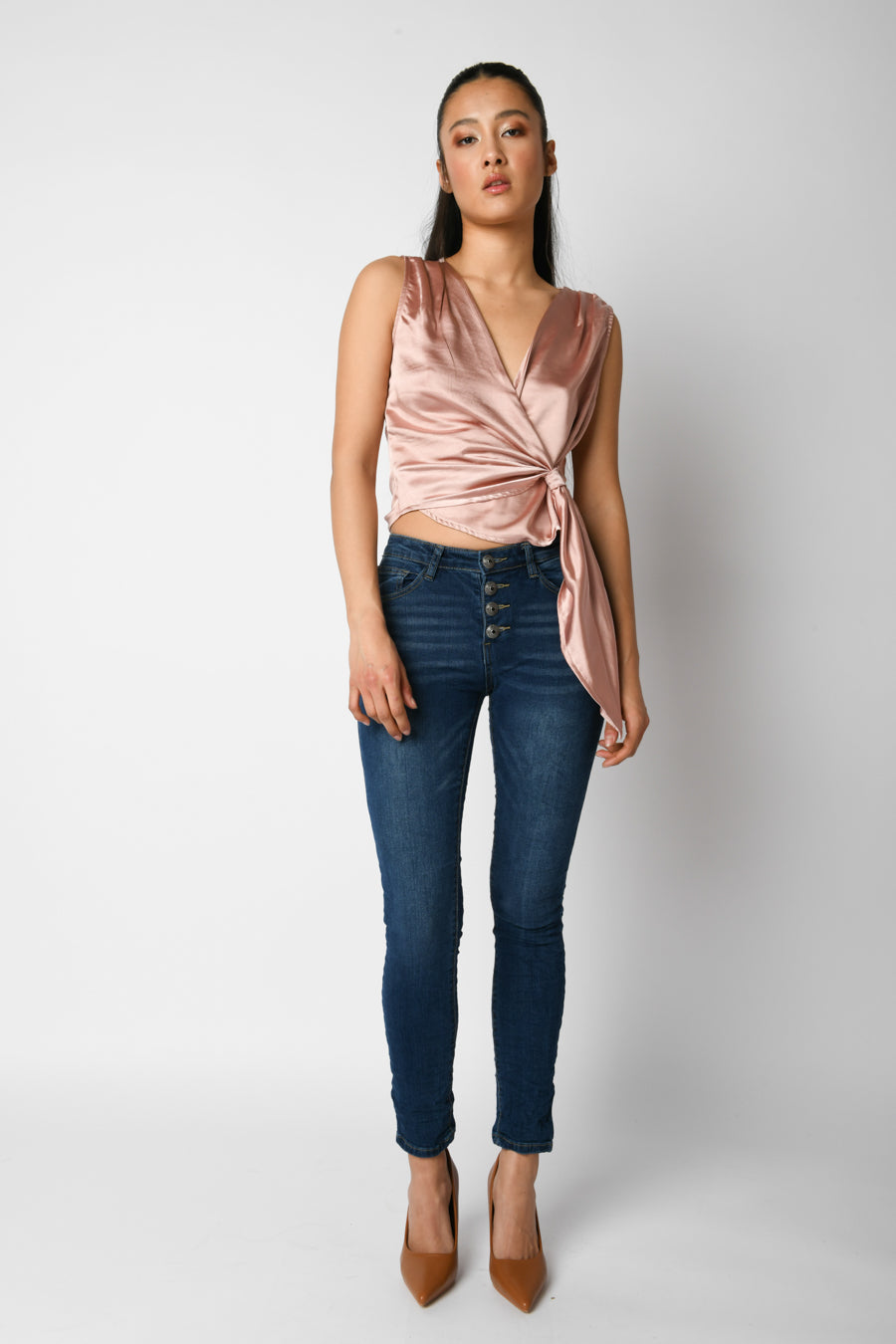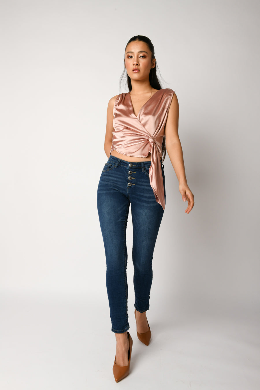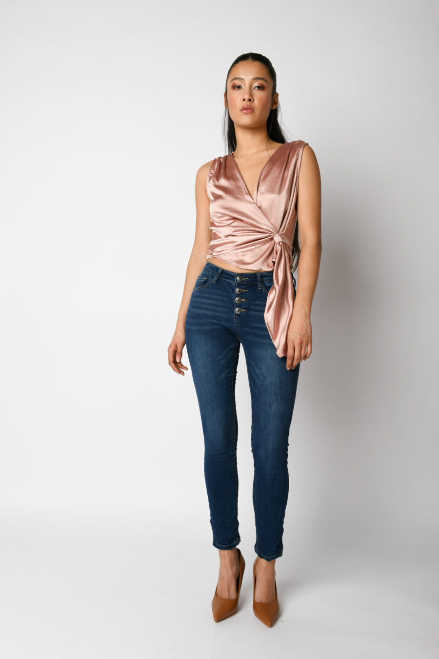 - Jeans skinny con bottoni gioiello