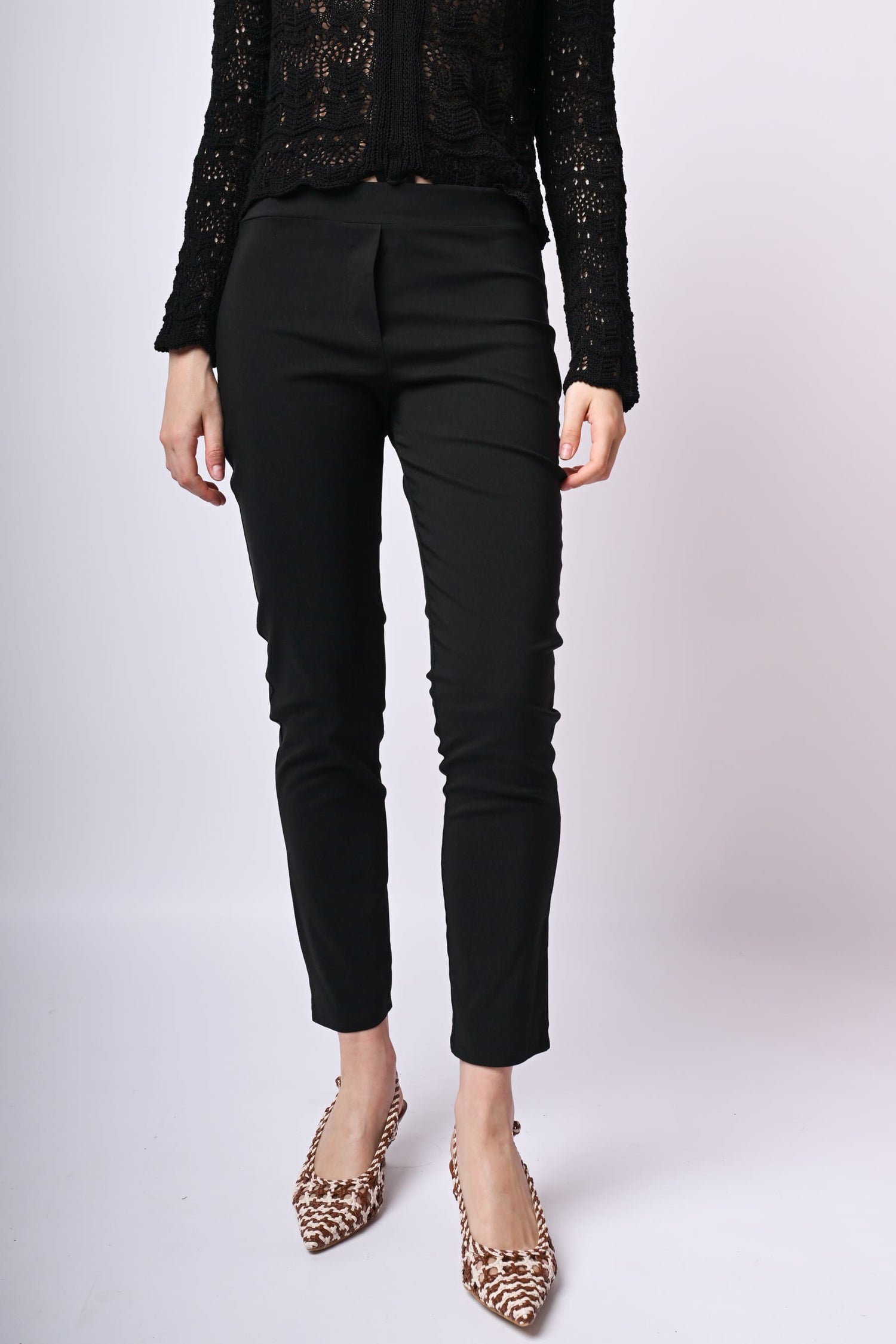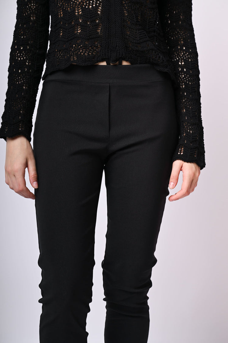 Pantaloni skinny misto viscosa e nylon stretch nero con vita elasticizzata.