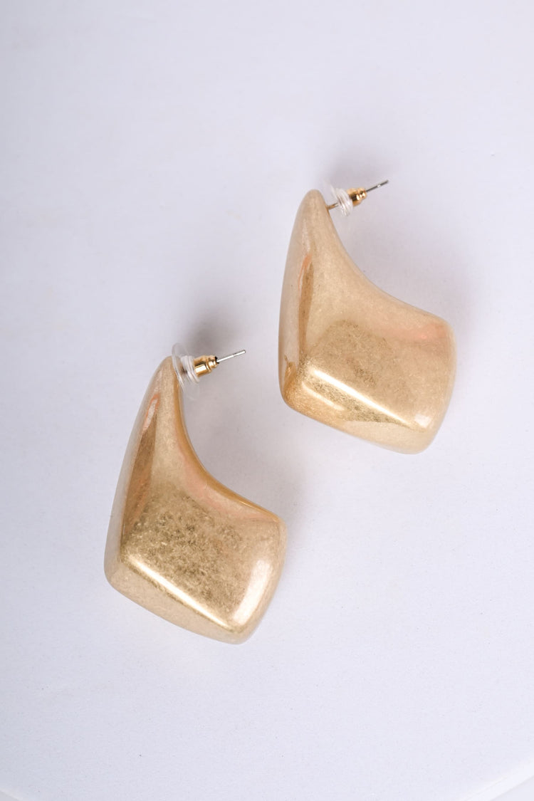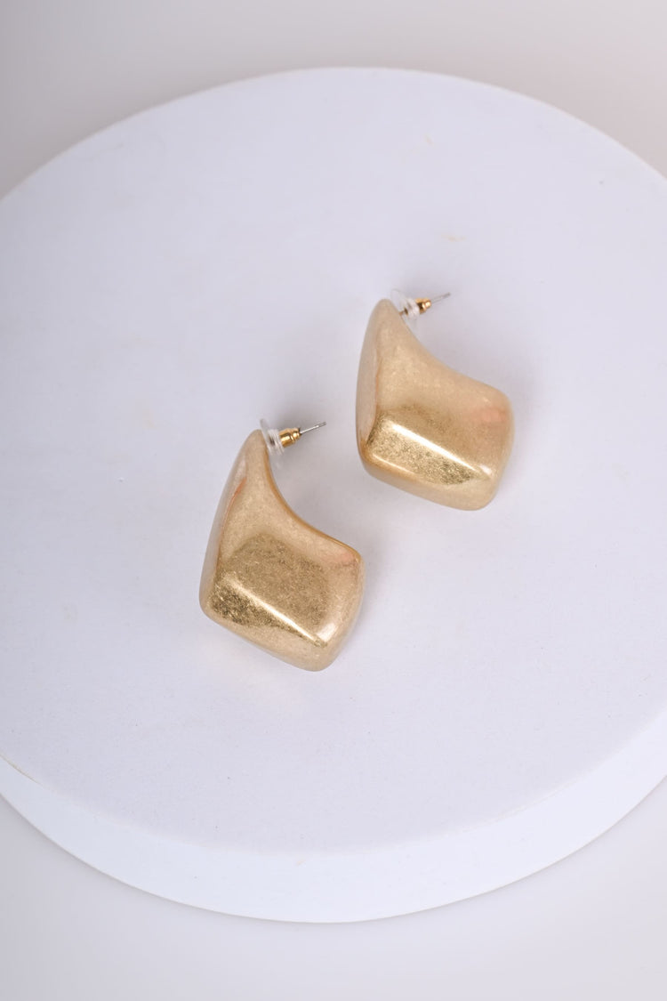 Orecchini geometrici in metallo dorato con chiusura posteriore a farfalla.