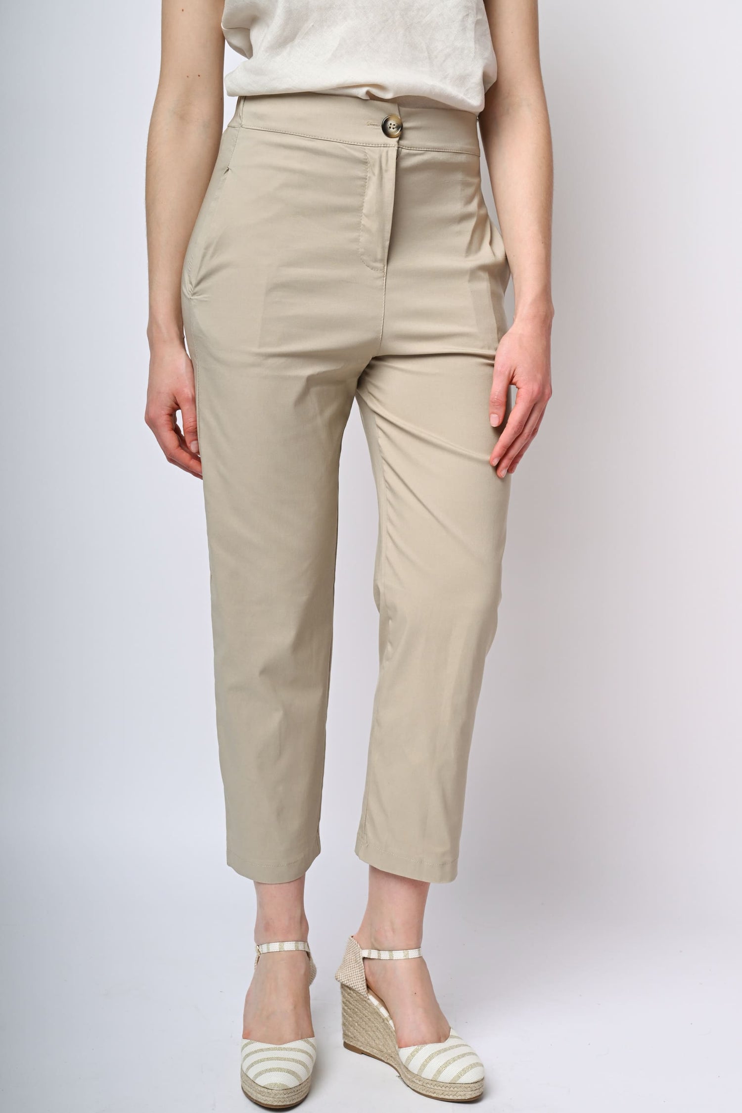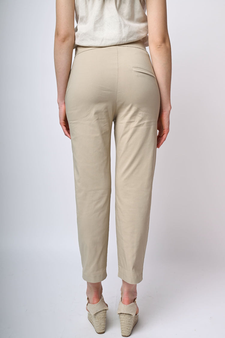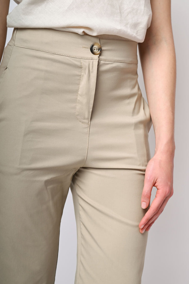 Pantaloni a gamba dritta misto viscosa stretch beige con chiusura con bottone e zip, tasche laterali e una tasca posteriore a filetto.