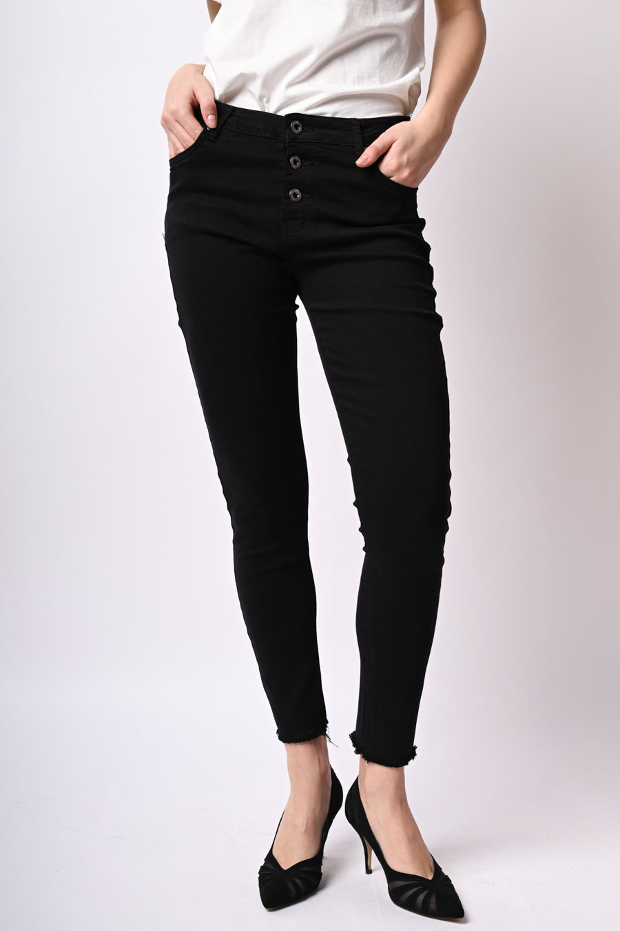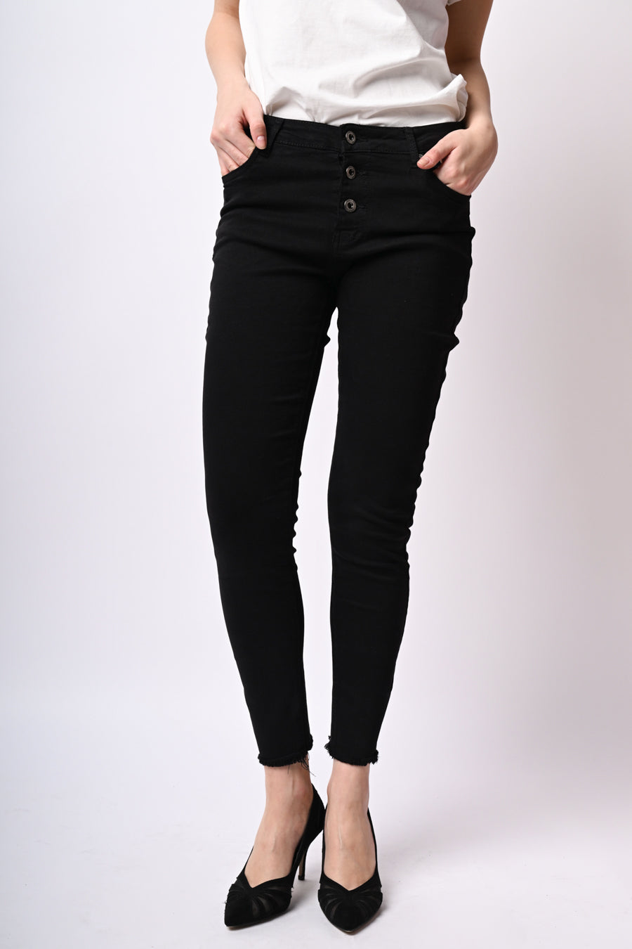- Pantaloni slim-fit con bottoni
