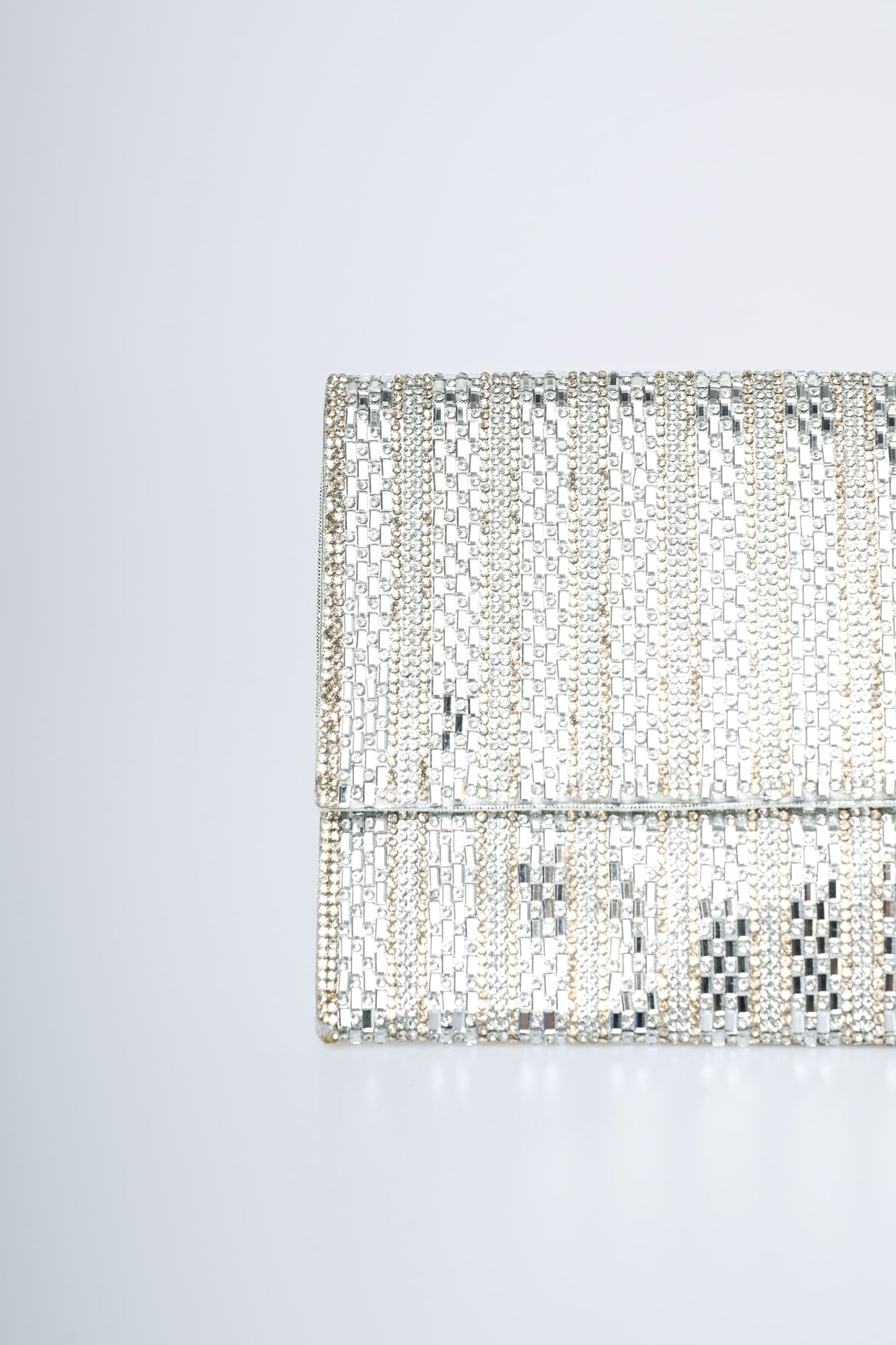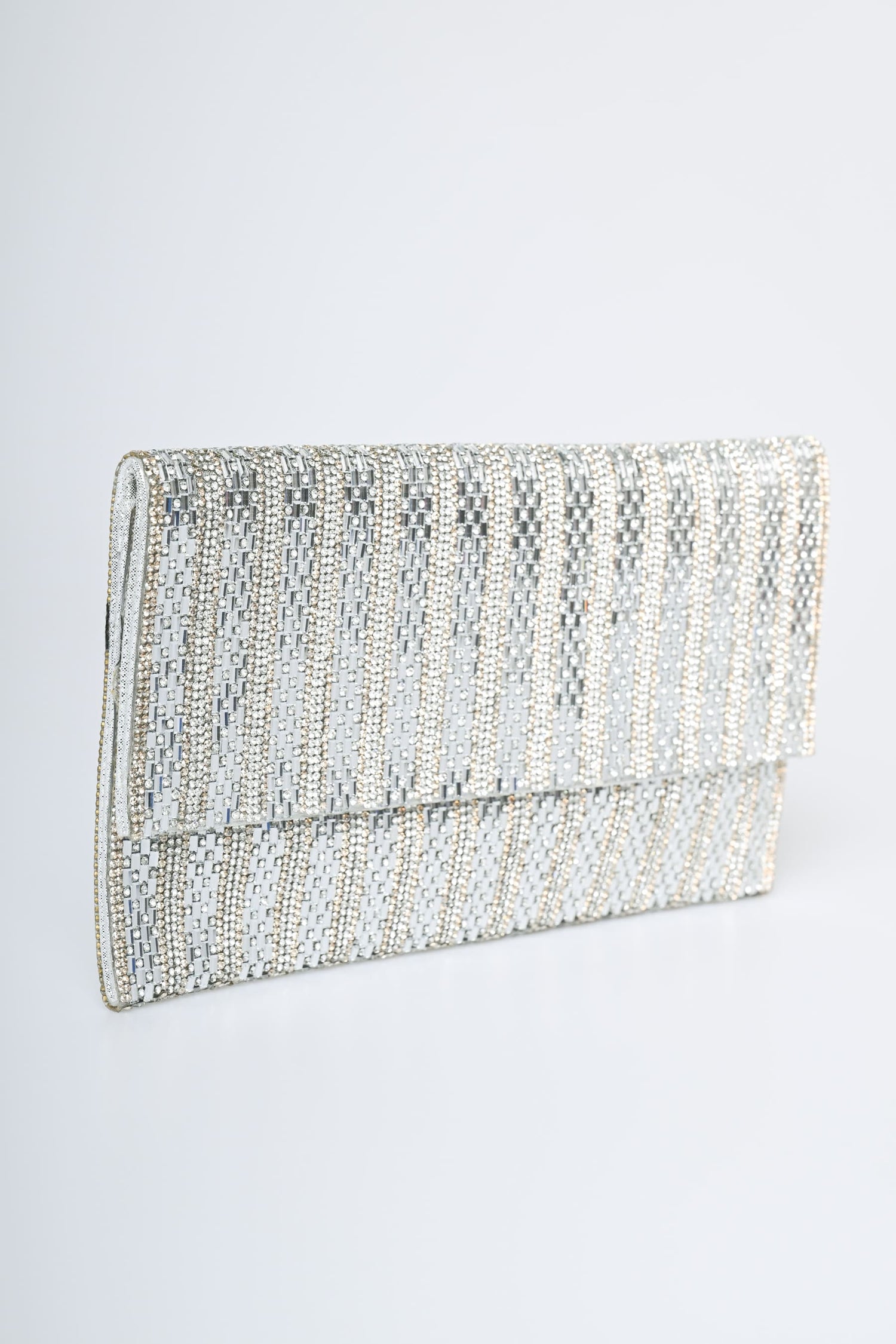 Pochette a righe in strass
