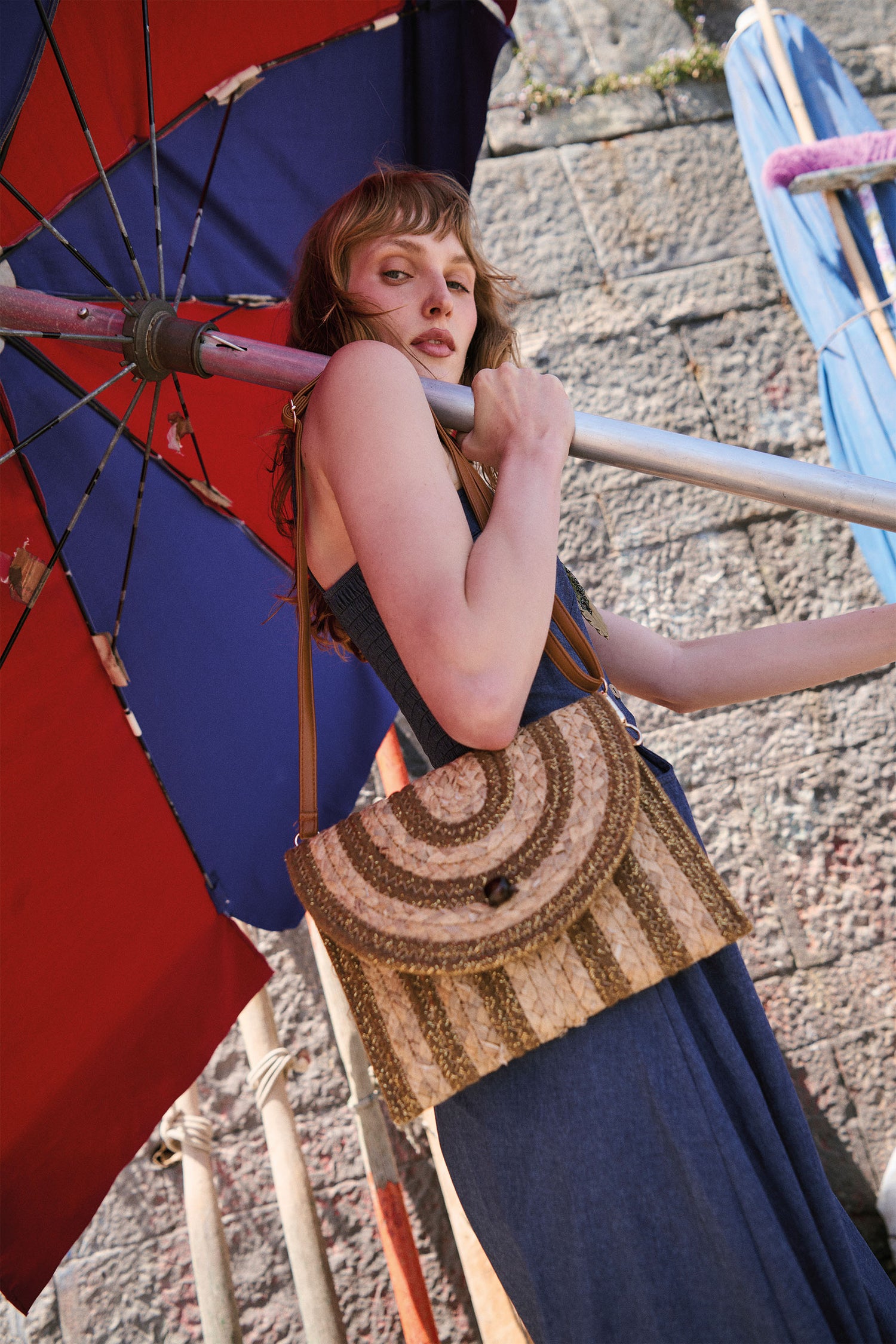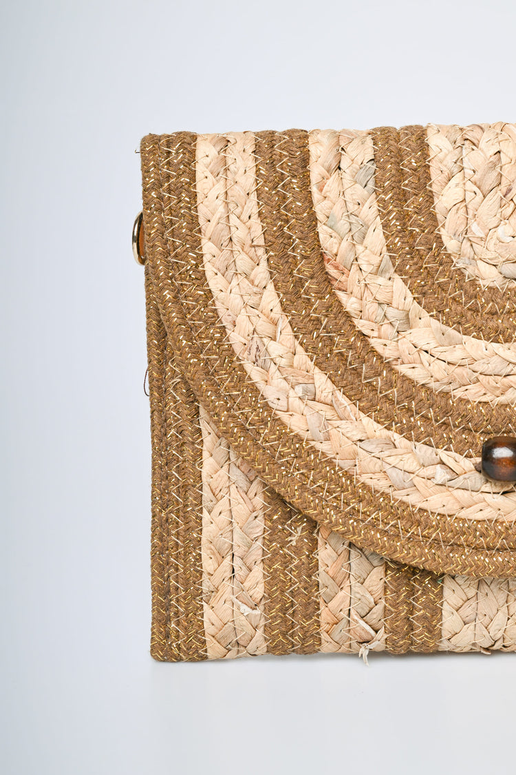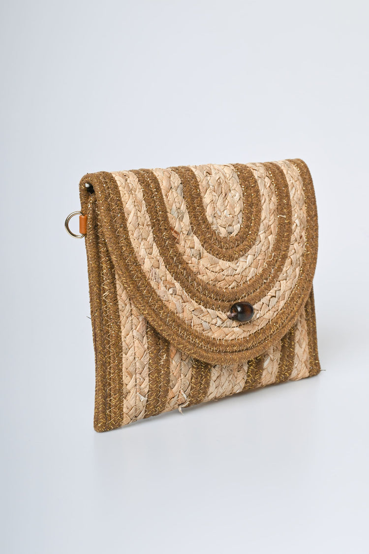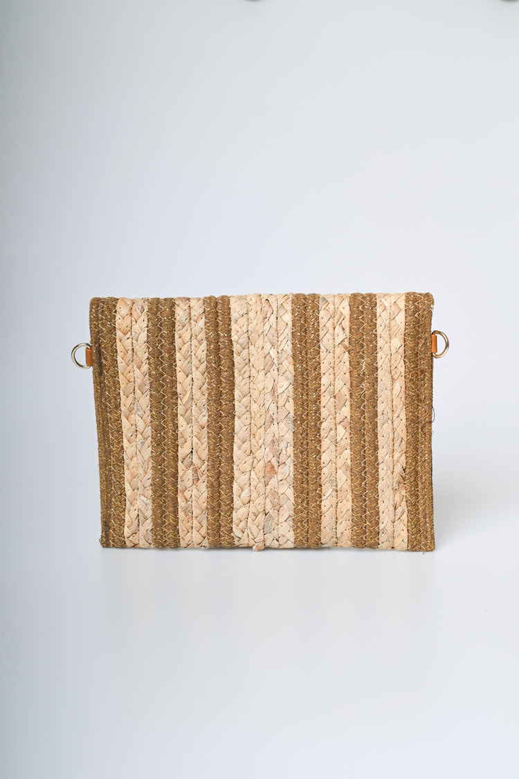 - Pochette in paglia a righe con lurex