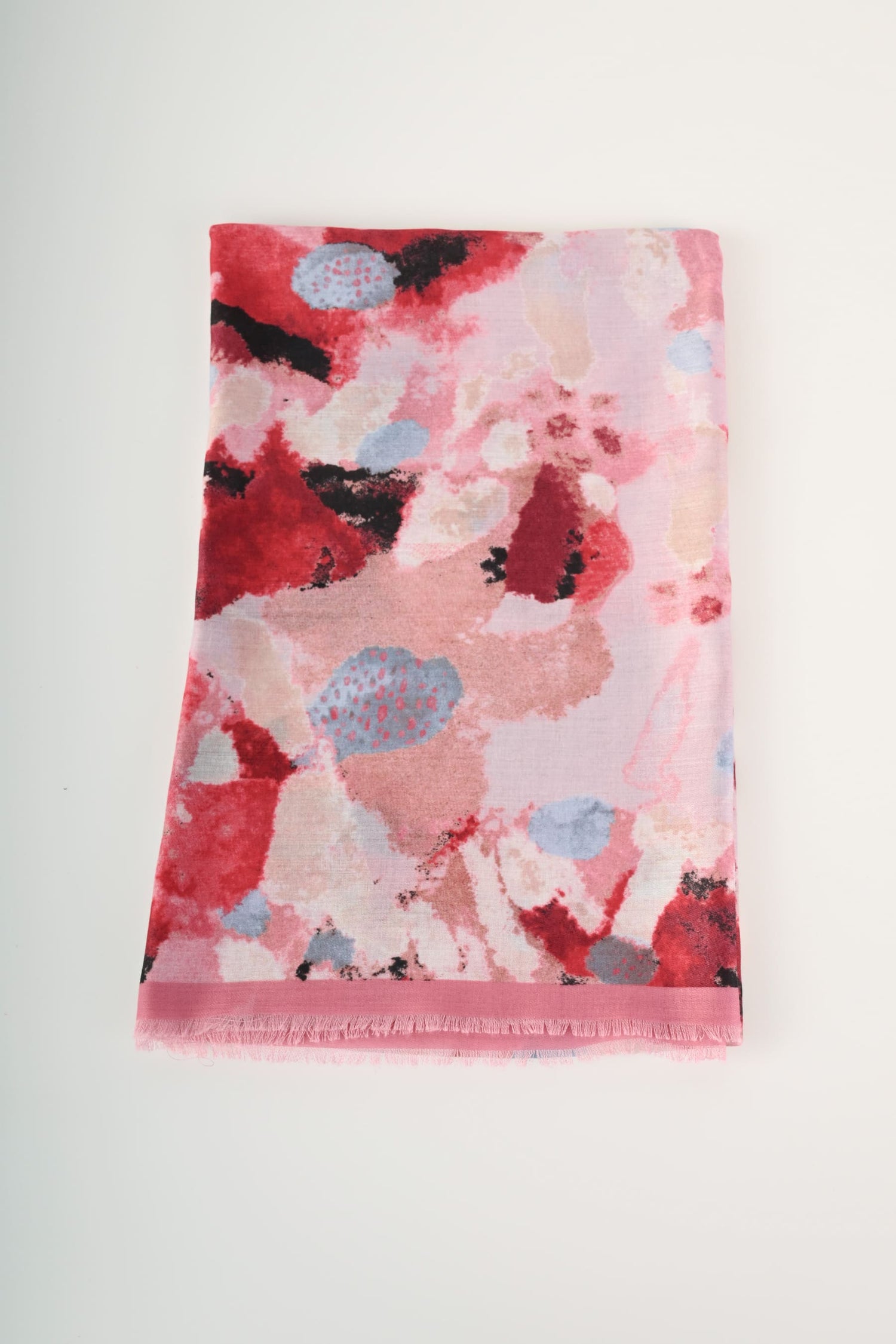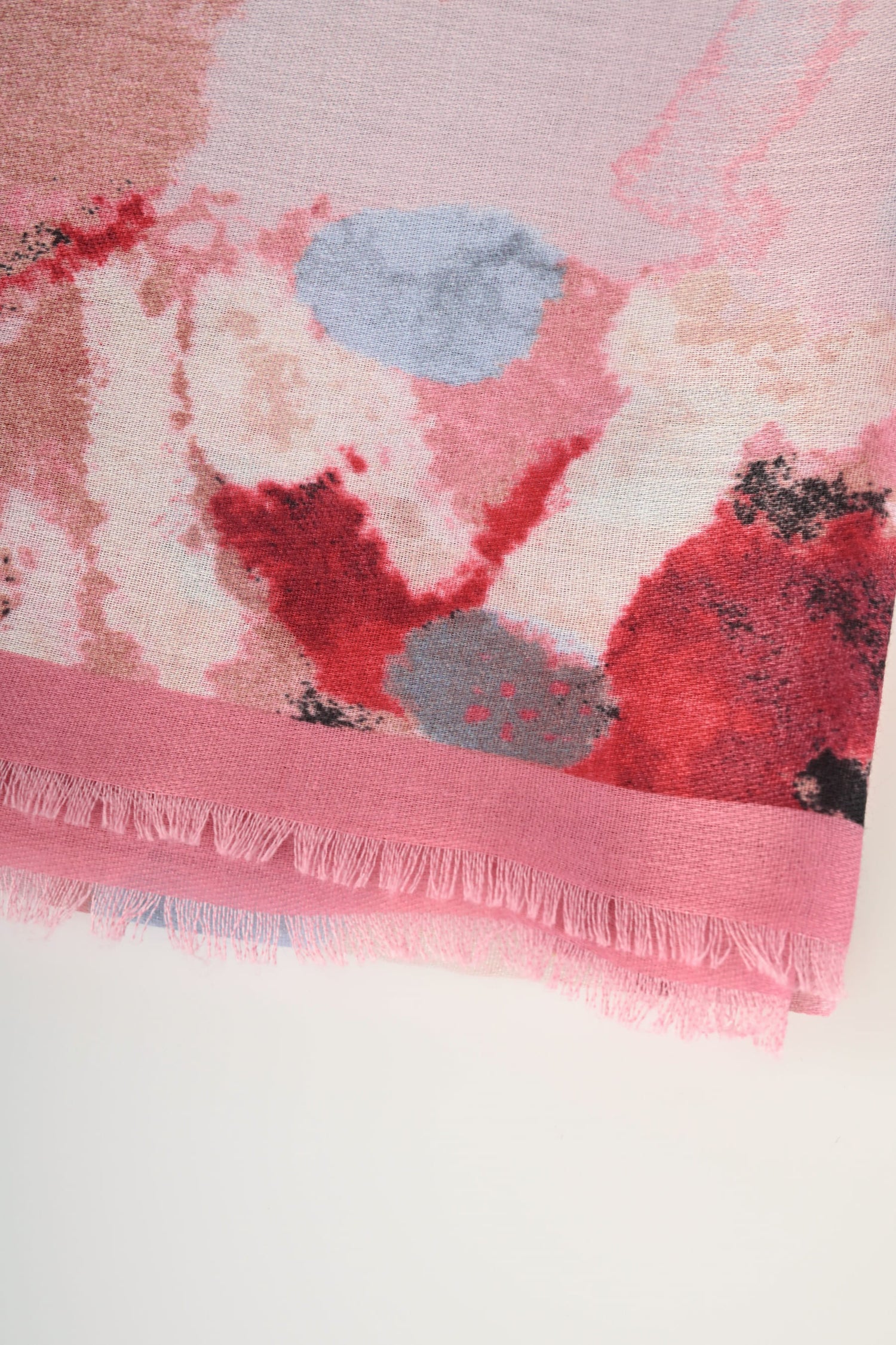 Sciarpa a stampa astratta floreale stile acquerello nei toni del rosa con finiture sfrangiate.