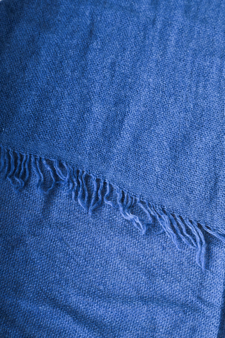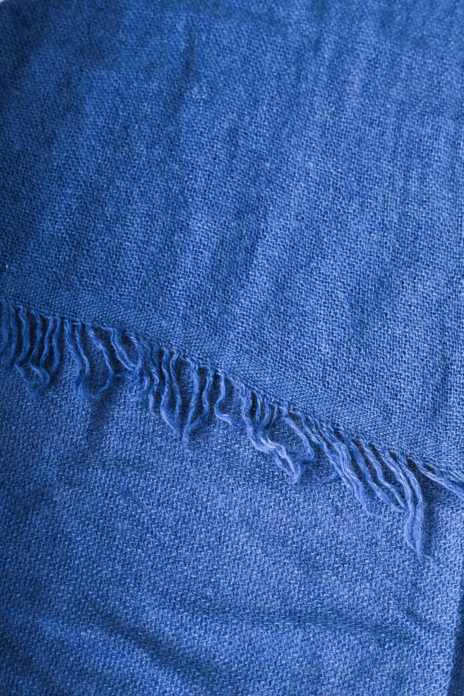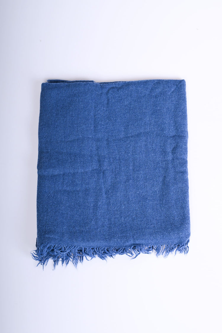 Sciarpa misto viscosa, lana e cashmere blu con finiture sfrangiate.