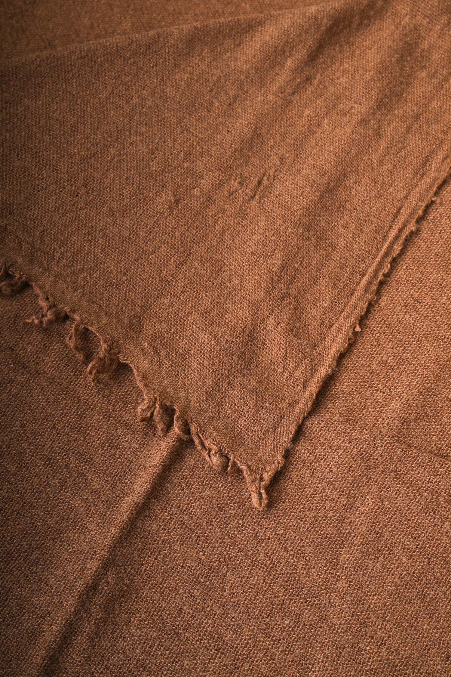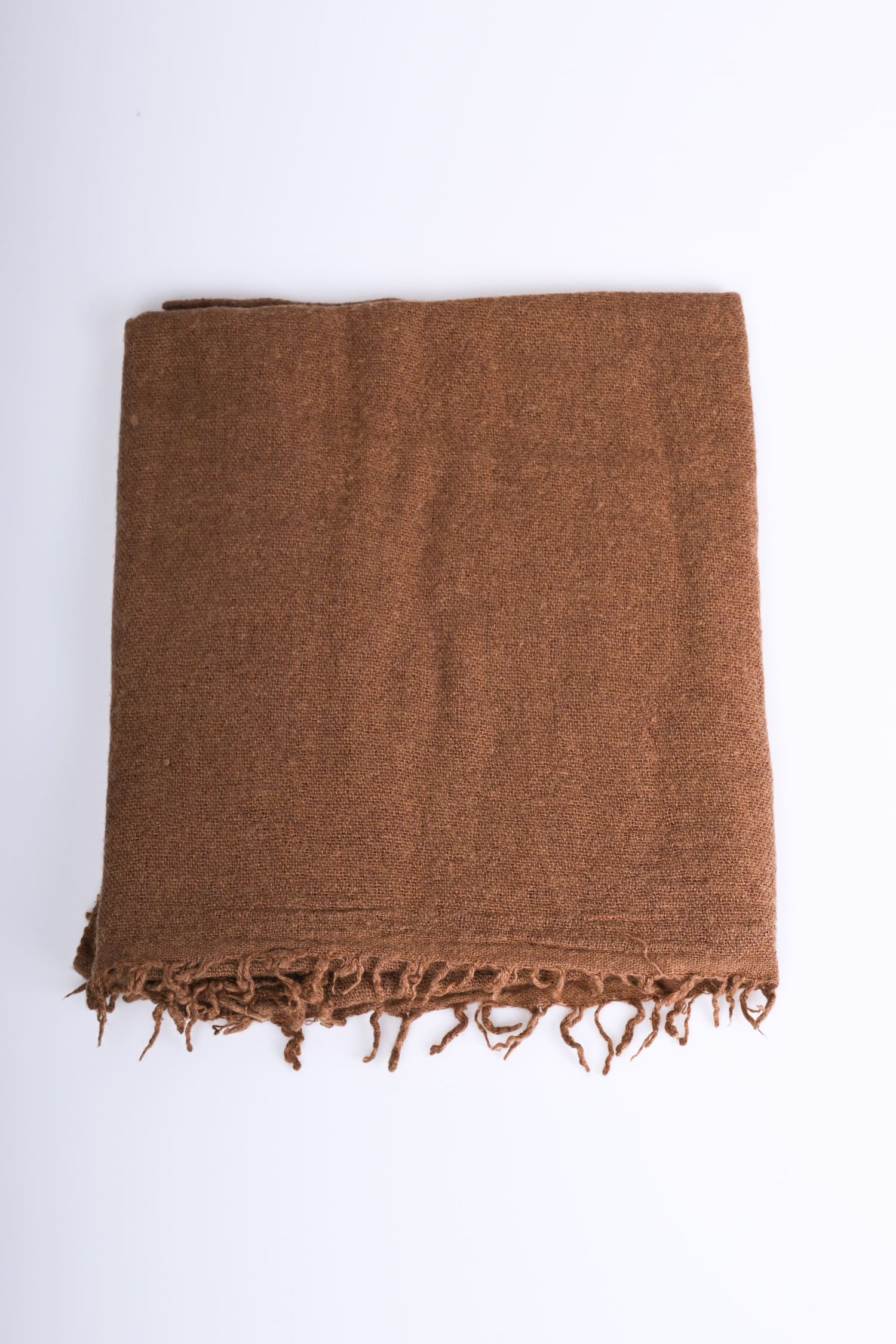 Sciarpa misto viscosa, lana e cashmere marrone con finiture sfrangiate.