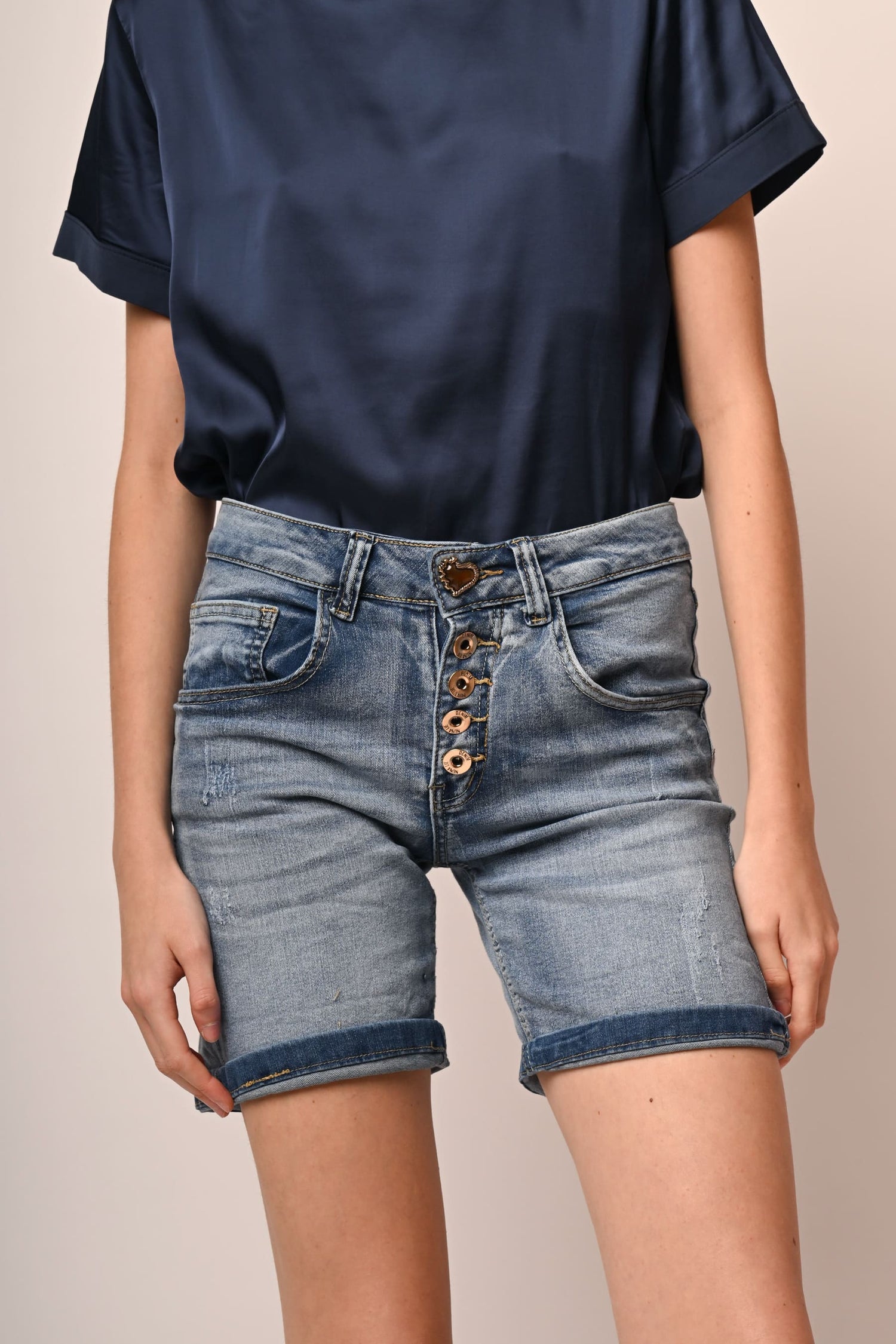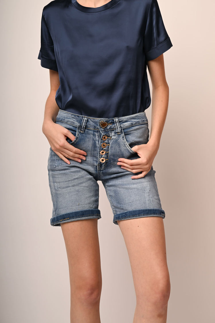 - Shorts in denim con bottoni