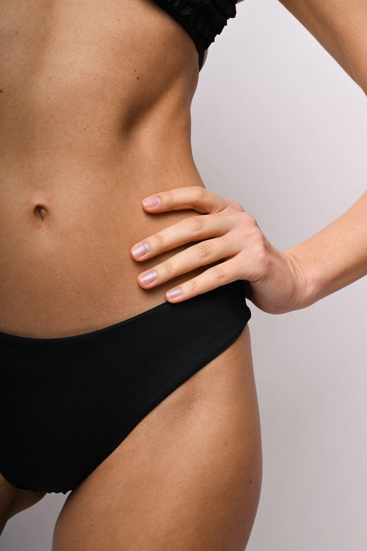 Slip per bikini neri con taglio classico sgambato.