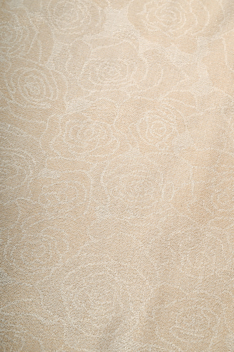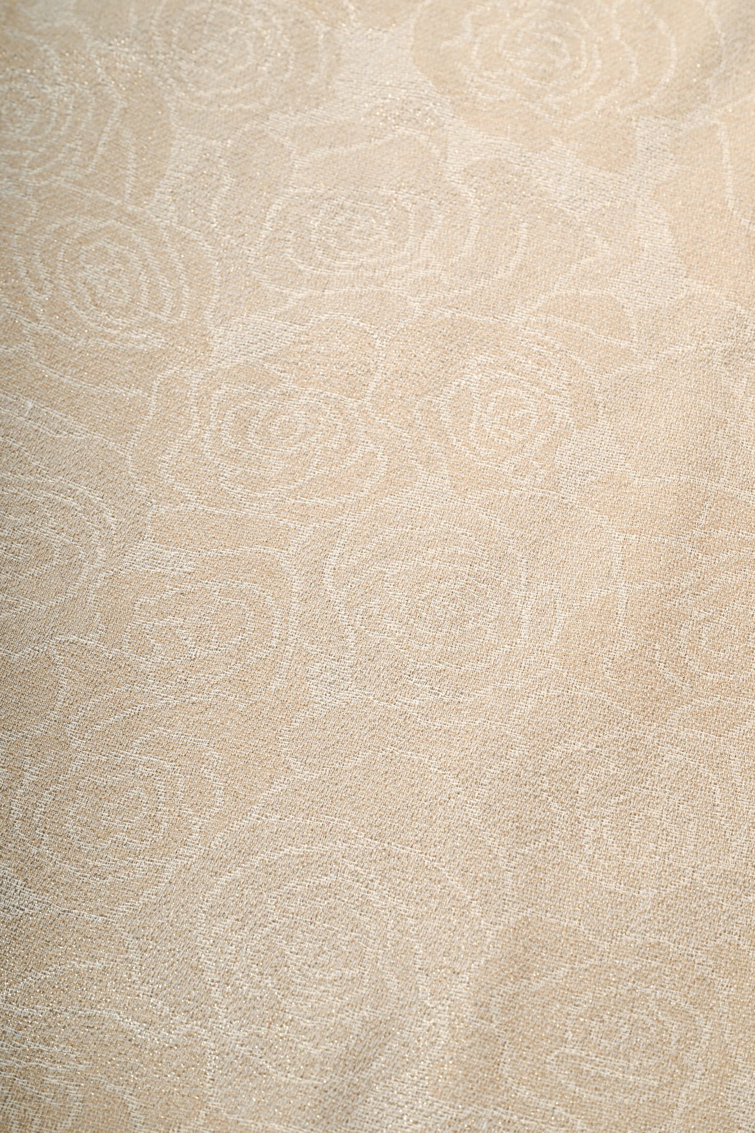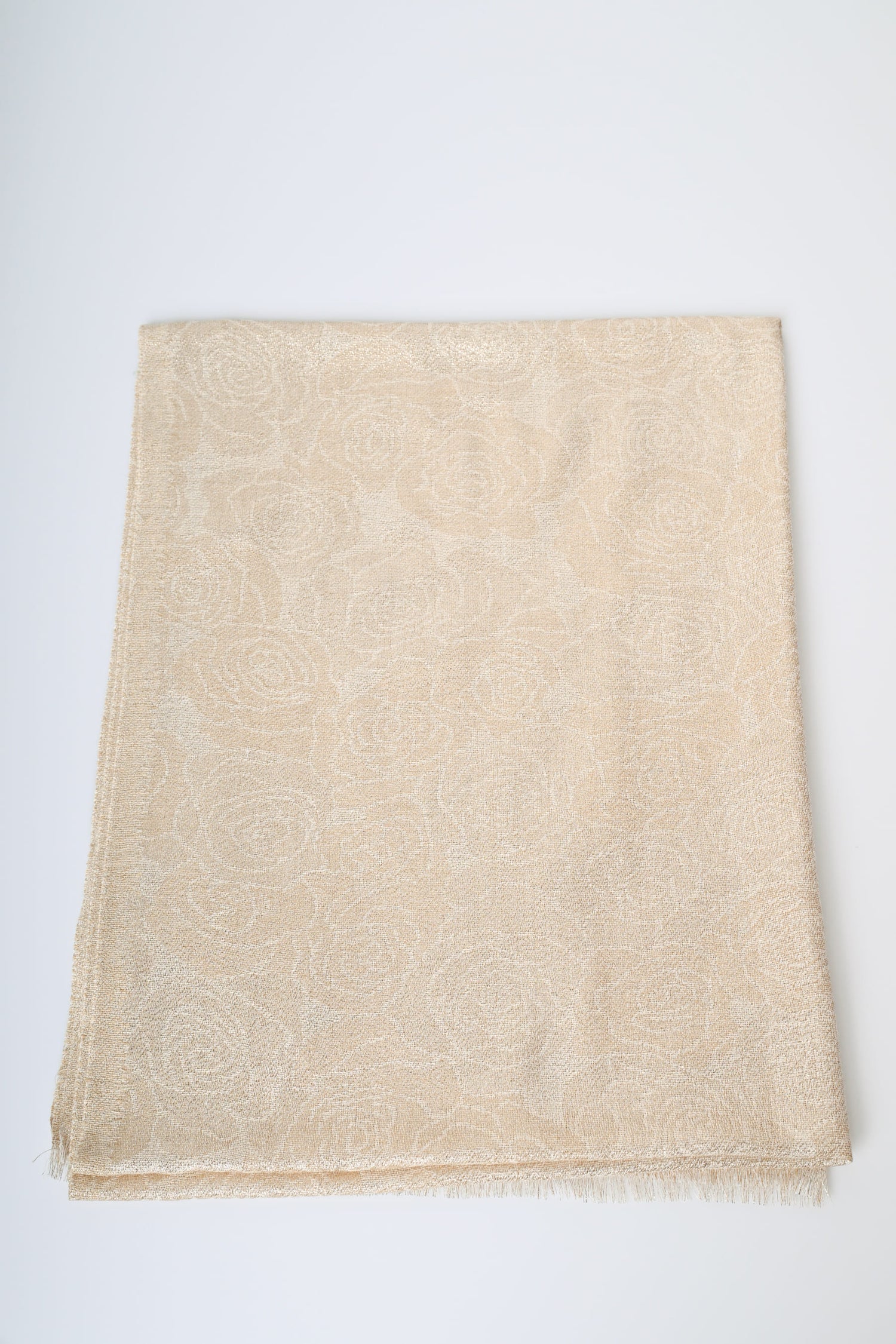 Stola in jacquard floreale nei toni del beige dorato con bordi sfrangiati.