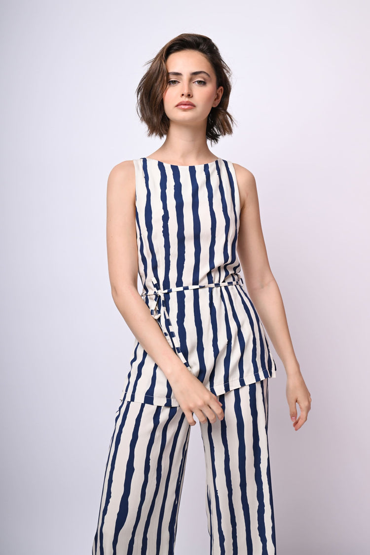 Top a righe con cintura