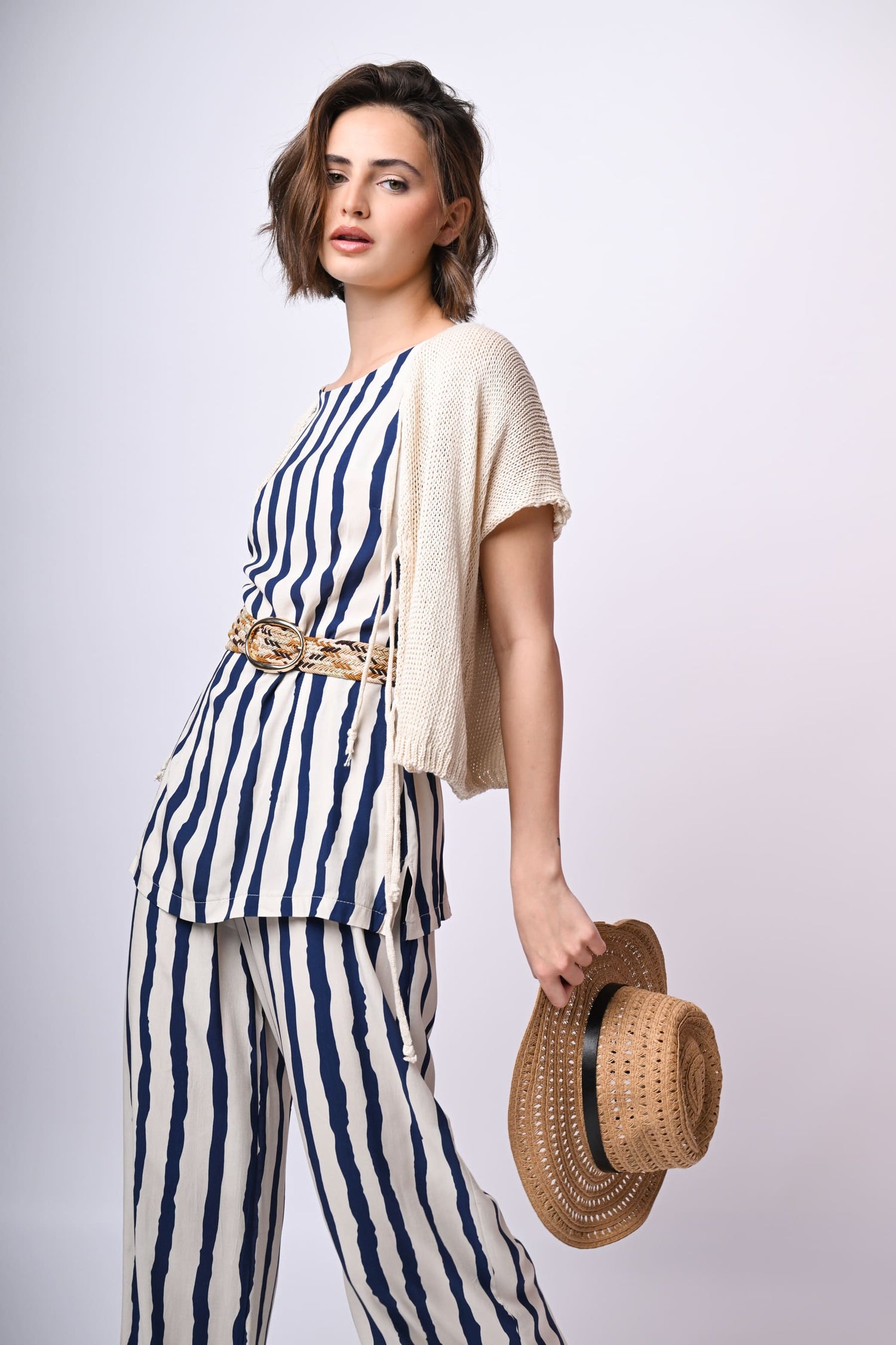 - Top a righe con cintura