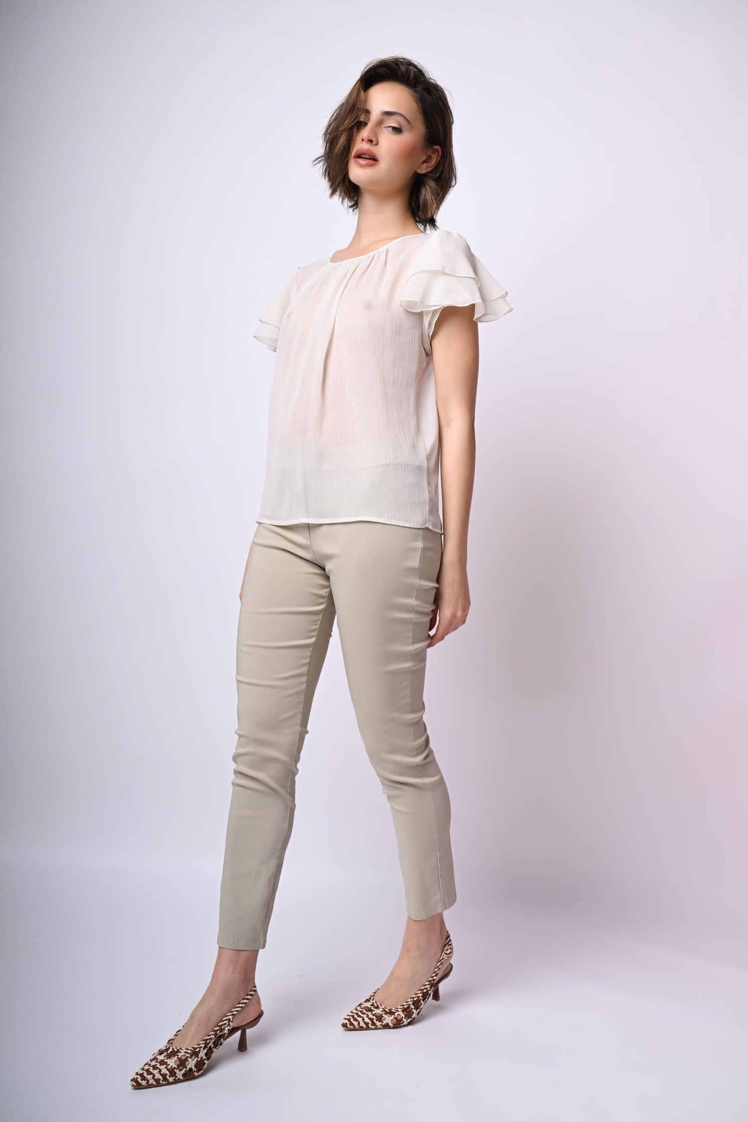 Top in tulle con maniche a balze